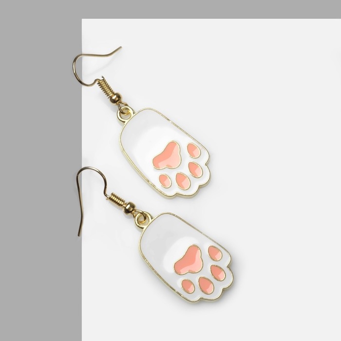 Серьги «Лапка» кота, цвет розово-белый в золоте