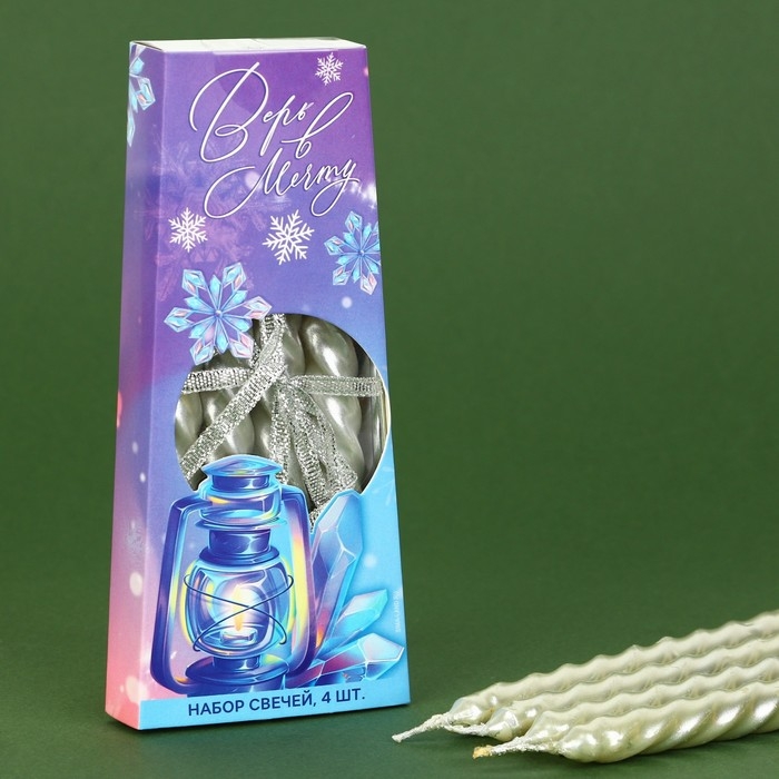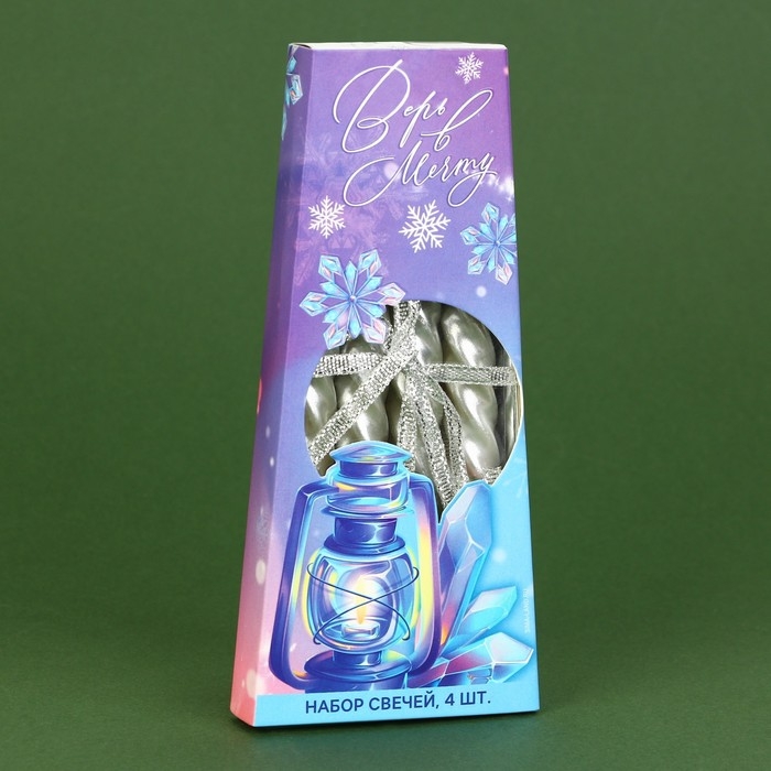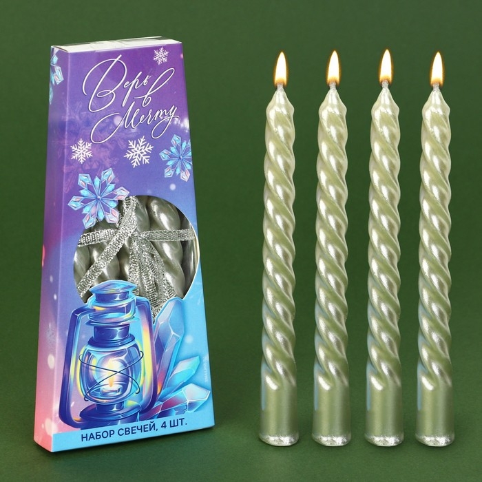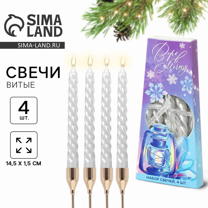 Новогодние свечи витые «Новый год: Поверь в мечту», без аромата, набор 4 шт, высота 15 см