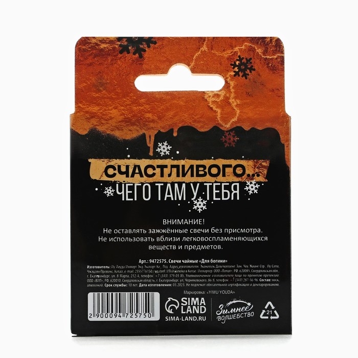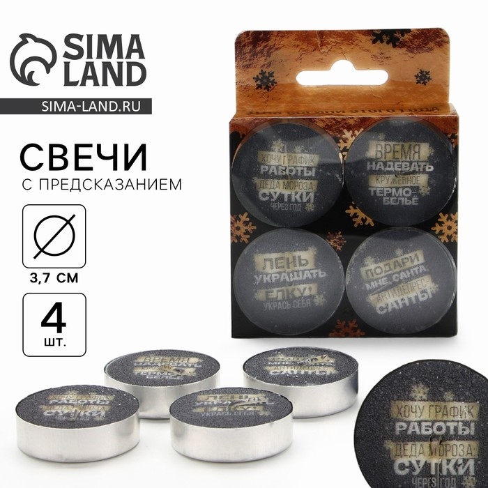 Новогодние свечи чайные «Новый год: Для богини», без аромата, набор 4 шт, диам. 3,7 см