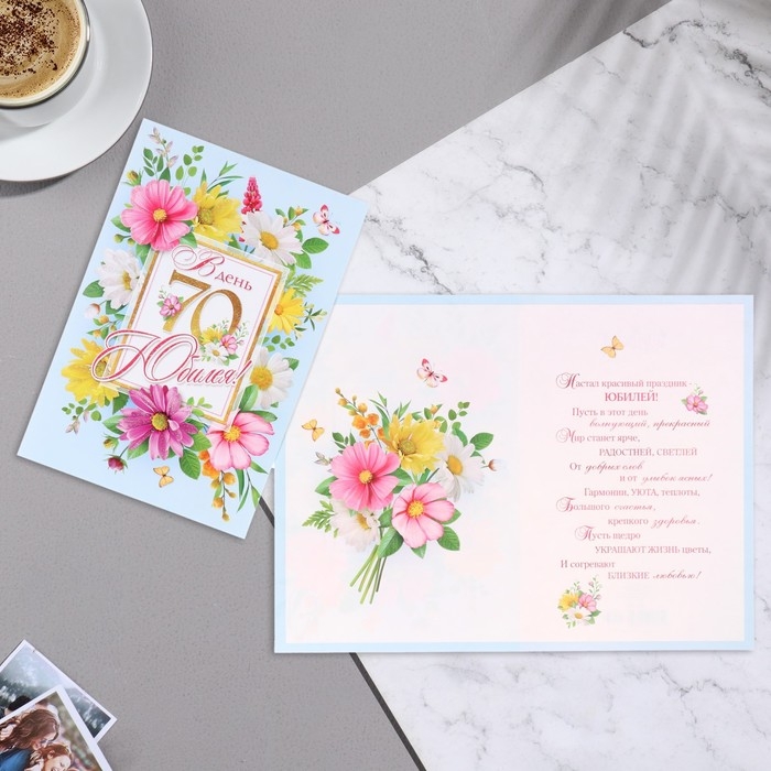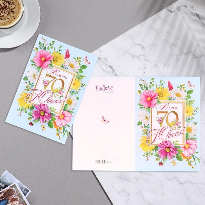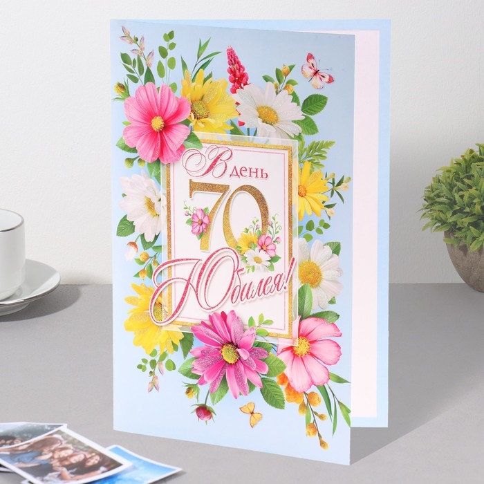 Открытка "В День Юбилея! 70" глиттер, тиснение, цветы, А4