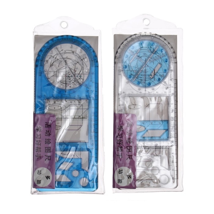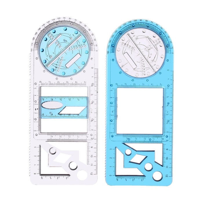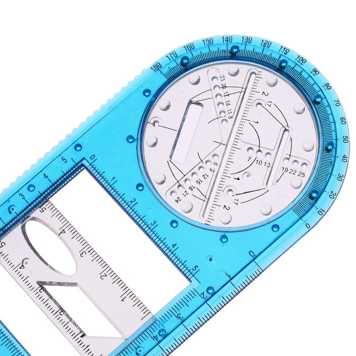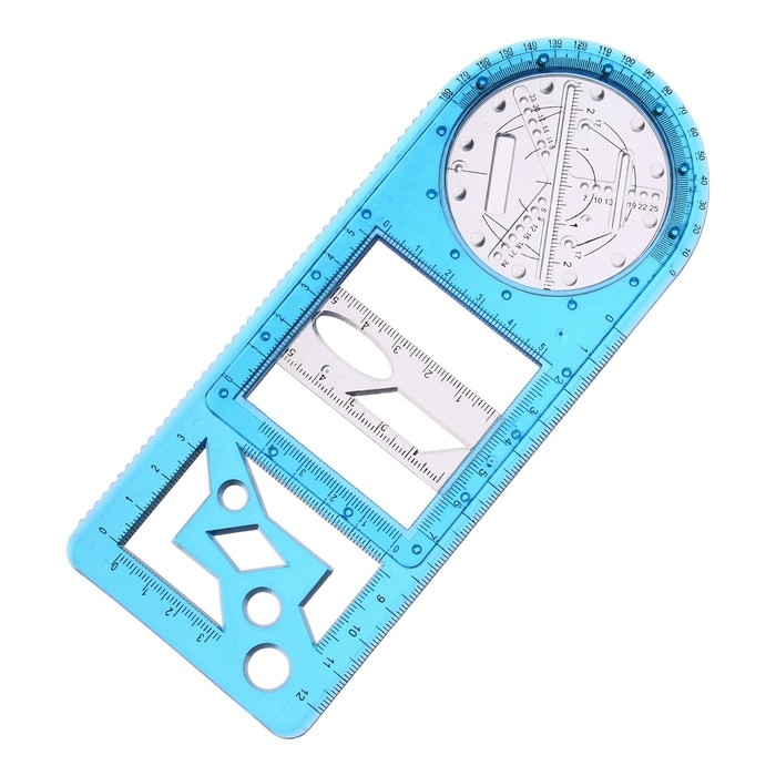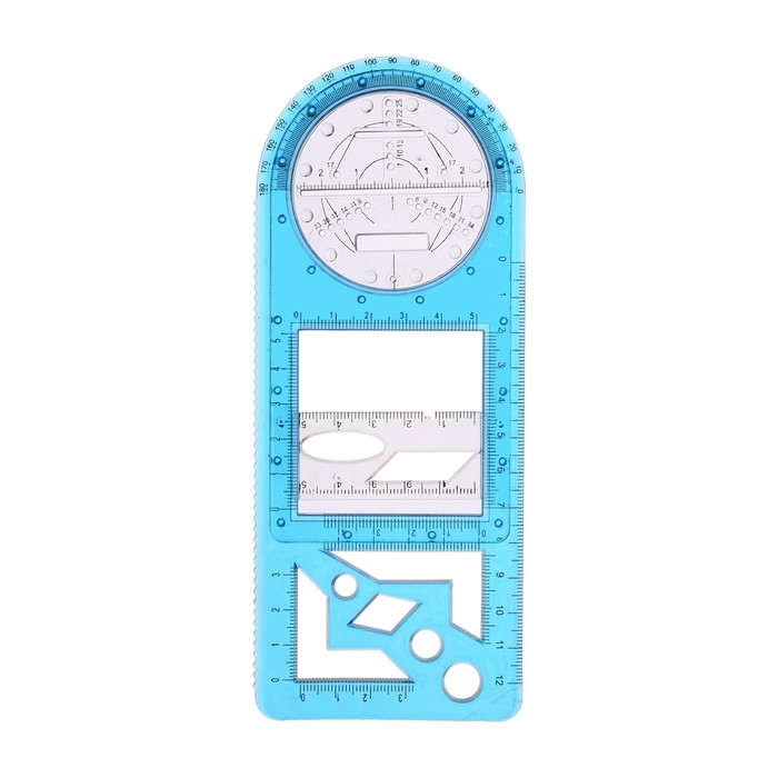 Линейка-трафарет для черчения фигур, с транспортиром, пластик