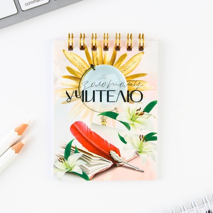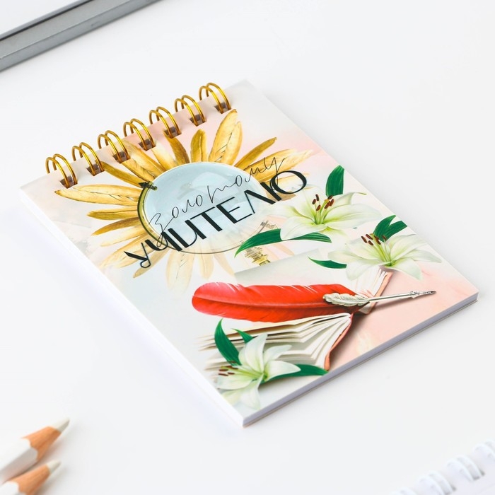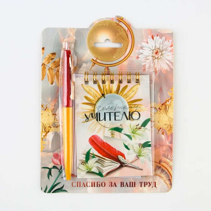 Подарочный набор блокнот «Золотому учителю», формат А7, 32 листа, ручка пластик,синяя паста