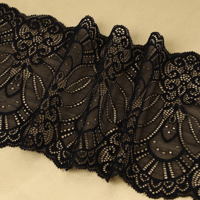 Кружевная эластичная ткань, 185 мм × 2,7 ± 0,5 м, цвет чёрный