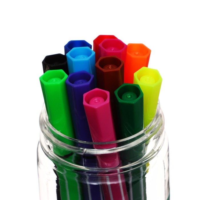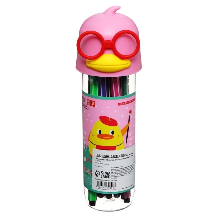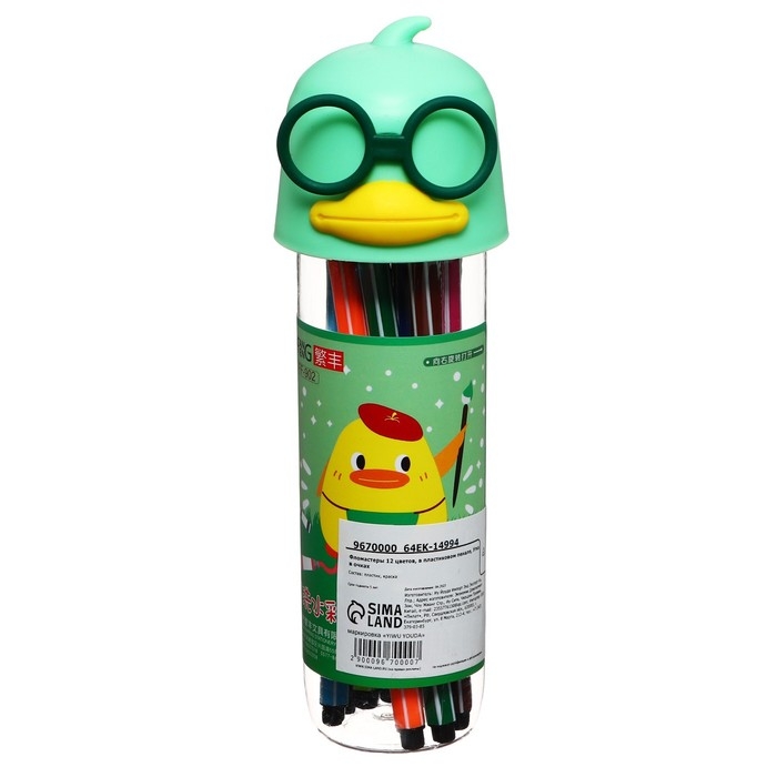 Фломастеры 12 цветов, "Утка в очках", в пластиковом пенале, МИКС