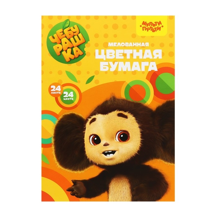 Цветная бумага А4 24 листа, 24 цвета, Мульти-Пульти "Чебурашка", мелованная, на скобе