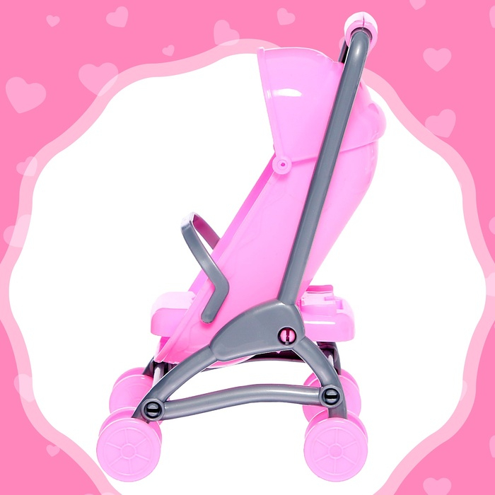 В комплекте есть аксессуары для весёлой игры: коляска, бутылочка и соска.