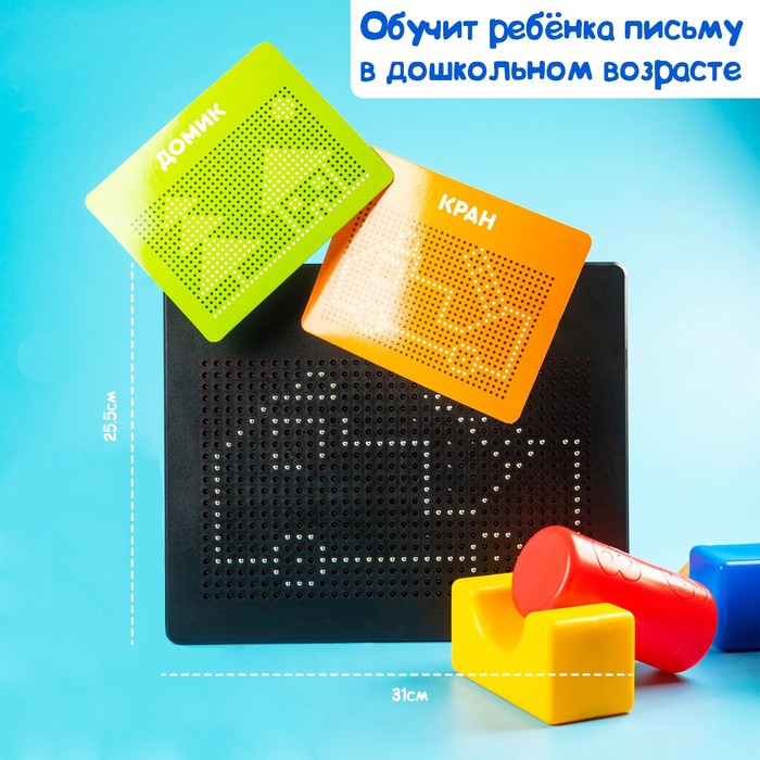 Планшет обучающий «Магнитное рисование», большой, 714 шариков, 10 карточек, цвет чёрный