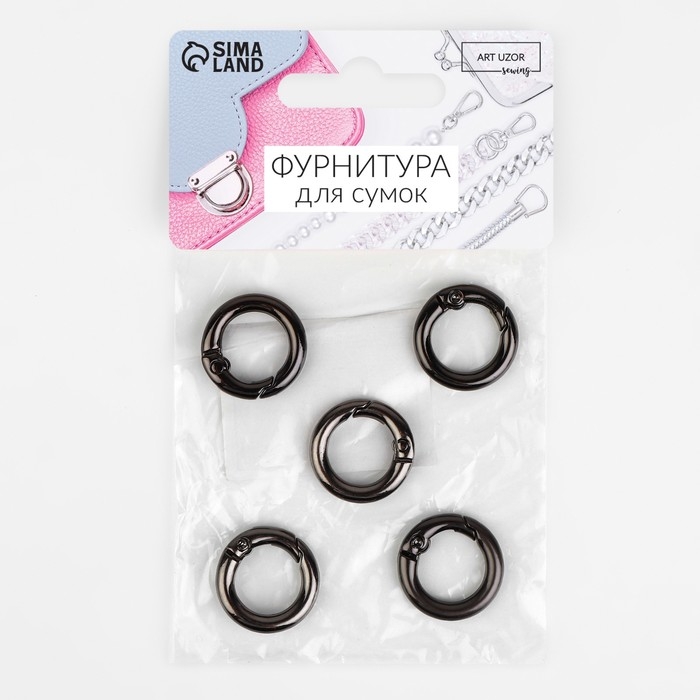 Кольцо-карабин, d = 13/20 мм, толщина - 3,5 мм, 5 шт, цвет чёрный никель