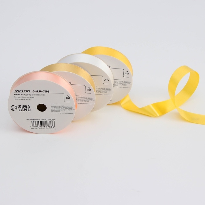 Лента для декора и подарков, "Глянец", желтый, 2 см х 50 м