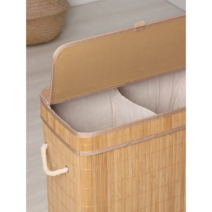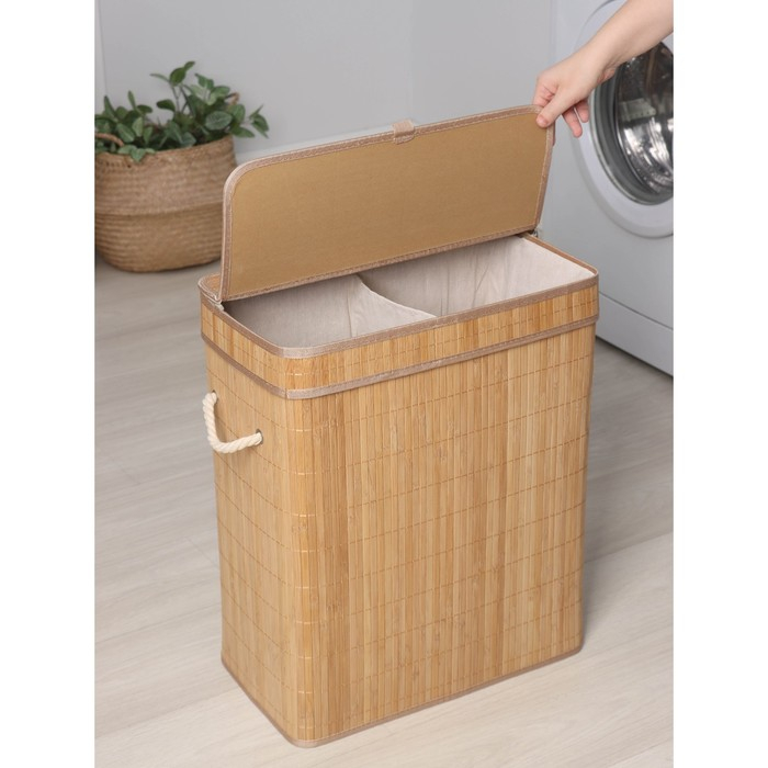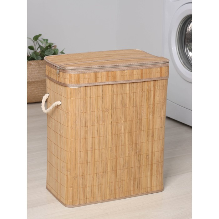 Корзина для белья Доляна «Кантри», с крышкой, 46×26×55 см, цвет бежевый
