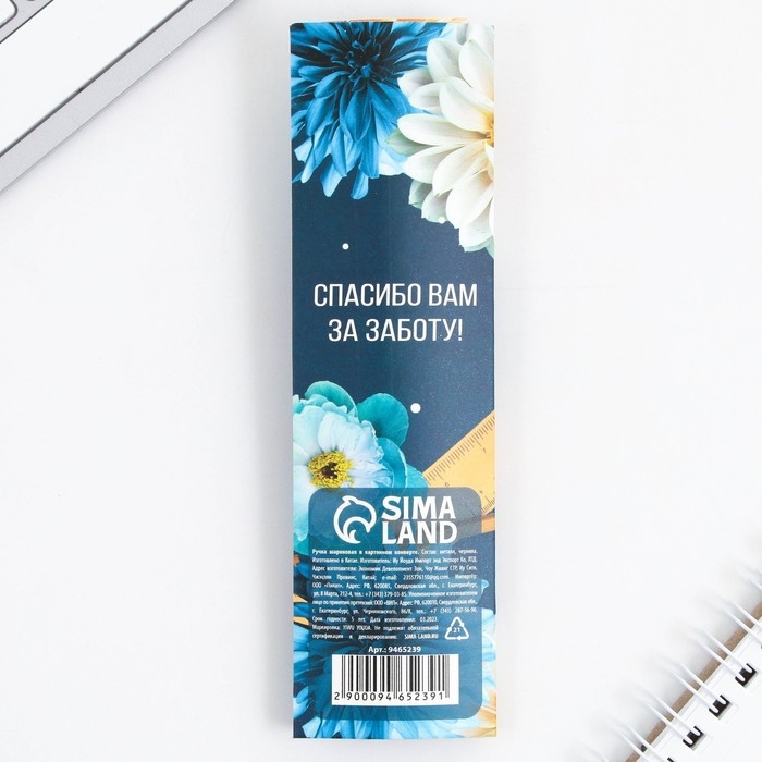 Ручка шариковая синяя паста, пластиковая с цветком "С праздником весны!"