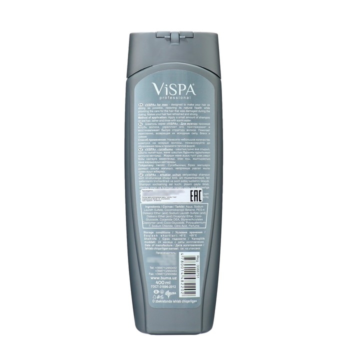 Шампунь серии VISPA Для мужчин проникая вглубь волоса, укрепляет его, приглаживает и восстанавливает былую структуру волоса. Помогает укреплению, возвращая их исходную силу, блеск и сияние.