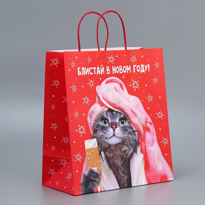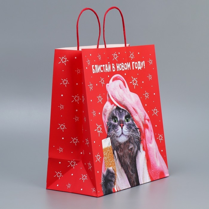 Пакет подарочный новогодний крафтовый «Блистай», 28 х 32 х 15 см, Новый год