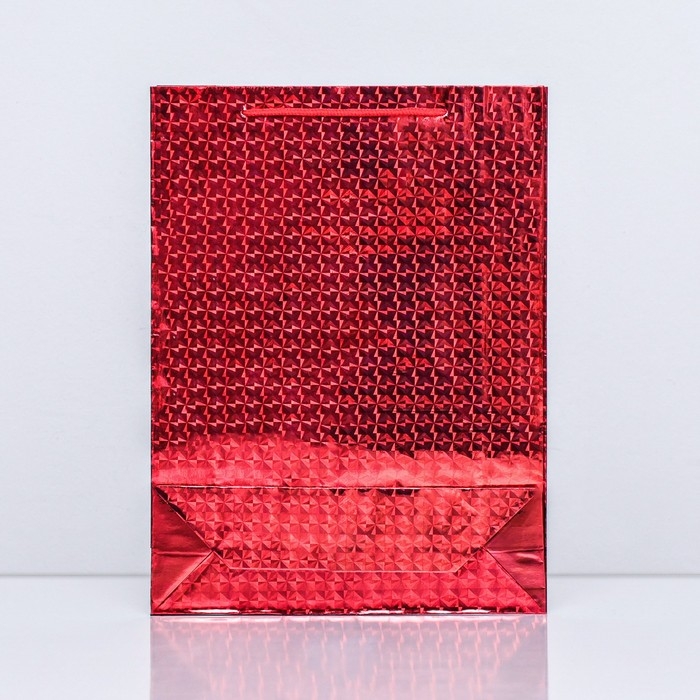 Новый год. Пакет подарочный, фольгированный, "Красный" 34 Х 26 Х 8 см.