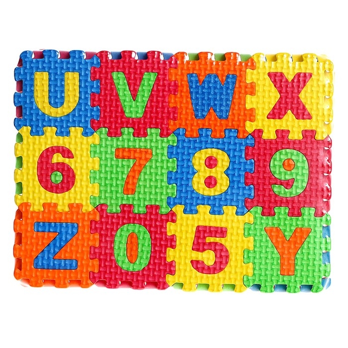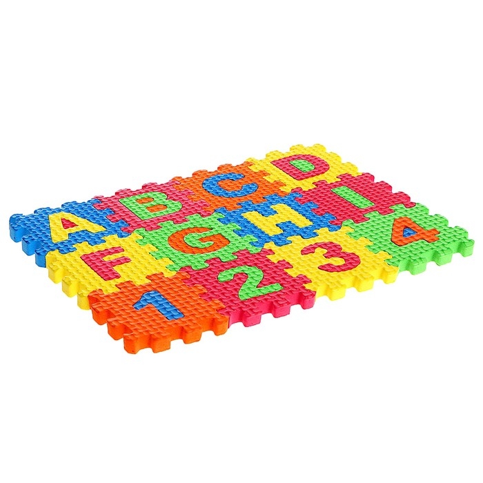 Мягкий развивающий коврик-пазл из 60 элементов, буквы и цифры, 60 х 25 см