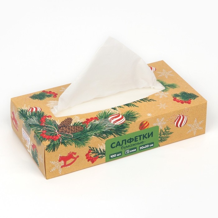 Салфетки бумажные в коробке «Новый год! Зимний уют», 100 шт, двухслойные