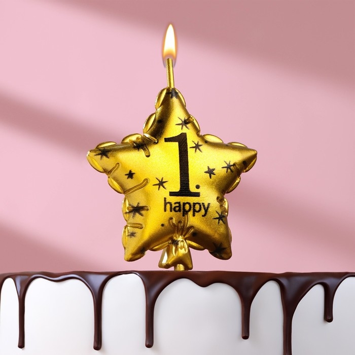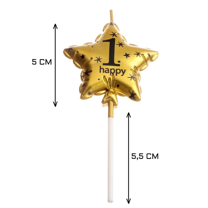Свеча в торт на шпажке "Воздушный шарик.Звезда", цифра 1, 5,5 см, золотая