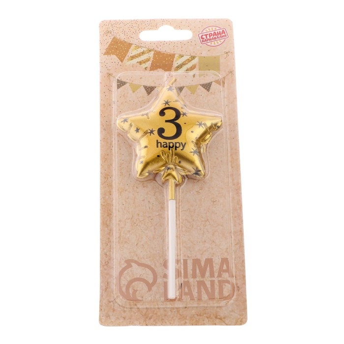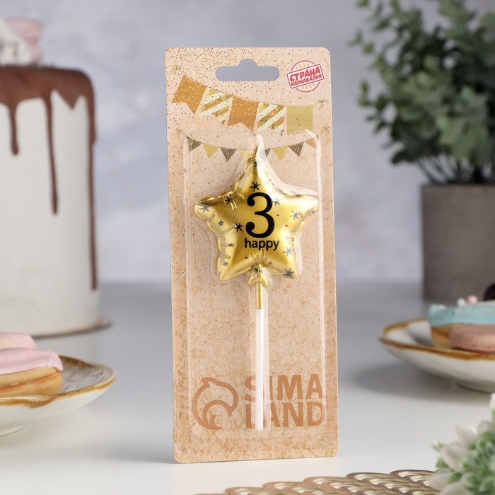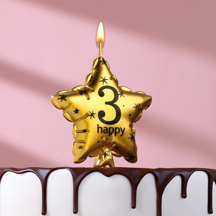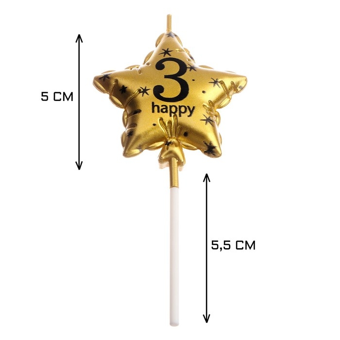 Свеча в торт на шпажке "Воздушный шарик.Звезда", цифра 3, 5,5 см, золотая