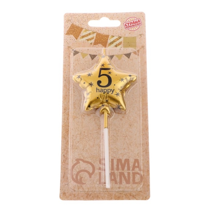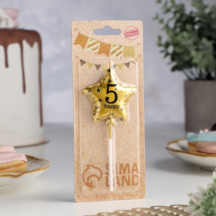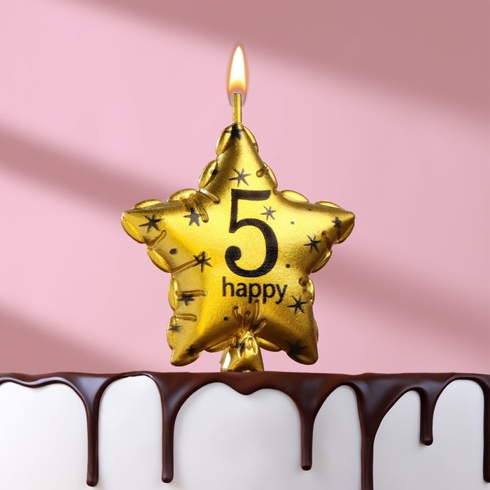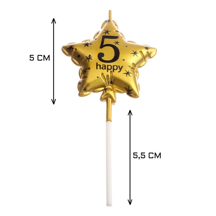 Свеча в торт на шпажке "Воздушный шарик.Звезда", цифра 5, 5,5 см, золотая