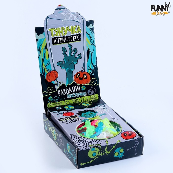 Хэллоуин. Антистресс сквиш мялка «Скелетики», цвета МИКС, в шоубоксе
