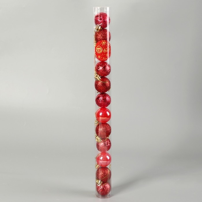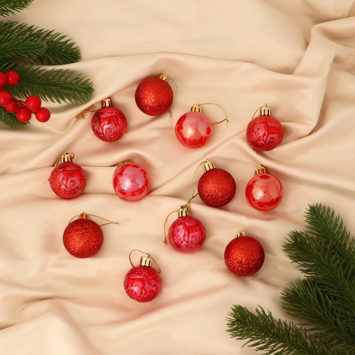 Набор шаров пластик d-4 см, 12 шт "Мелодия" узор глянец, красный