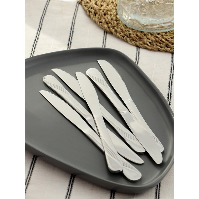Ножи столовые из нержавеющей стали Доляна, длина 21,5 см, толщина 2 мм, 5 шт