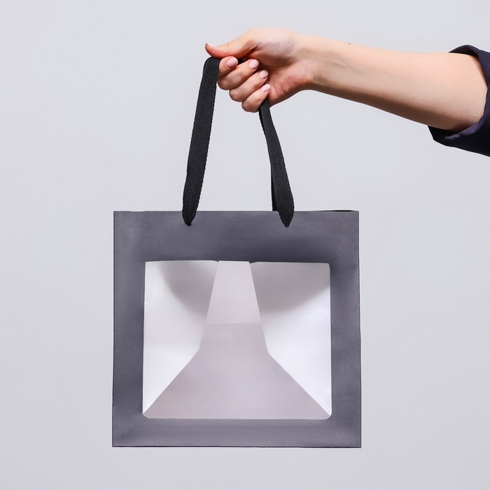 Пакет подарочный, крафт, с окном, «Черный», 25 х 25 х 25 см