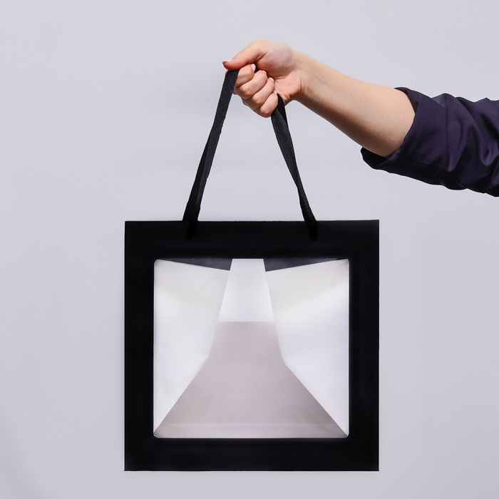 Пакет подарочный, крафт, с окном, «Черный», 30 х 30 х 30 см