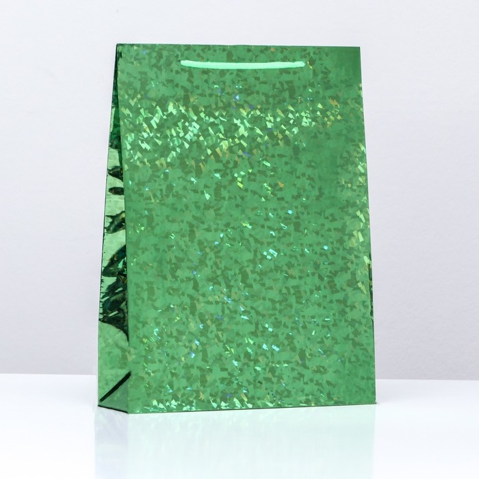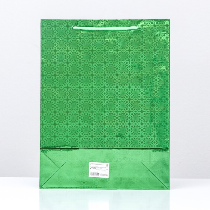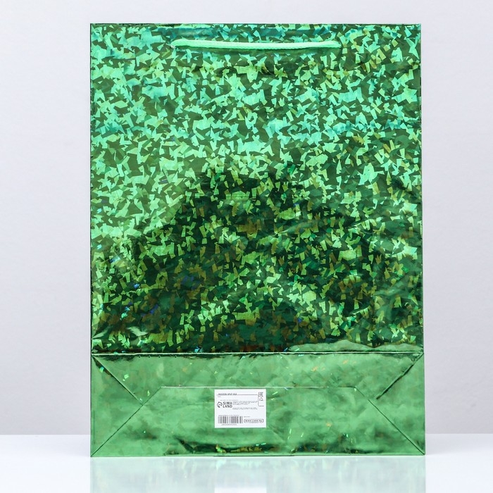 Новый год. Пакет подарочный, фольгированный, "Зеленый" 34 Х 26 Х 8 см.