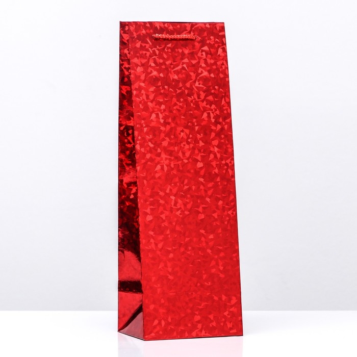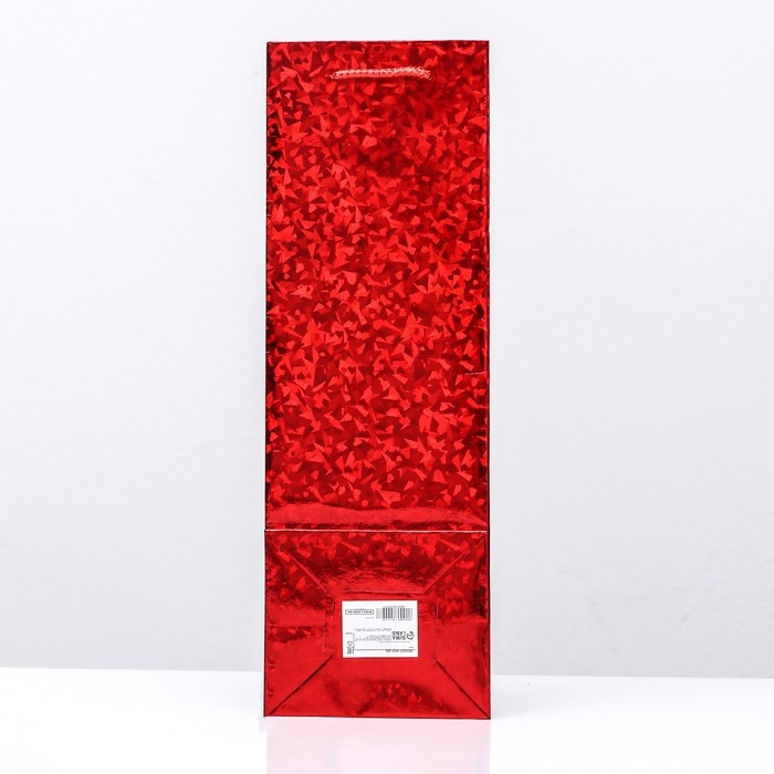 Новый год. Пакет подарочный, новогодний под бутылку фольгированный, "Красный" 35 Х 12 Х 9 см.