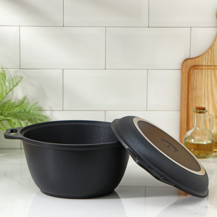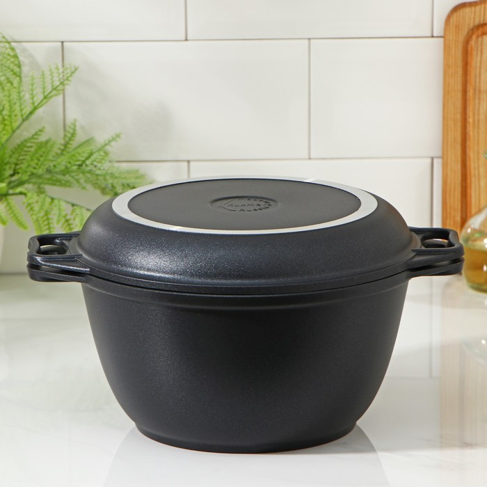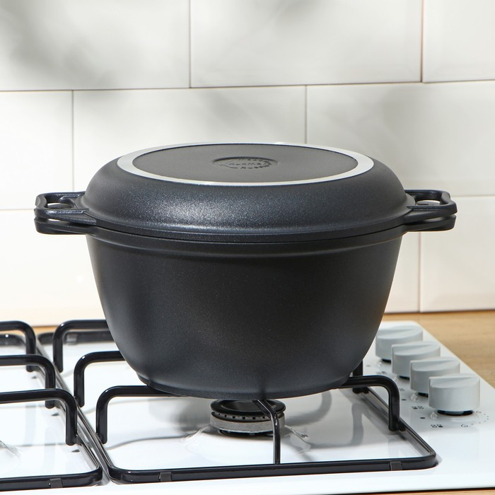 Казан «Традиция», 3 л, крышка-сковорода, литые ручки, антипригарное покрытие, цвет чёрный