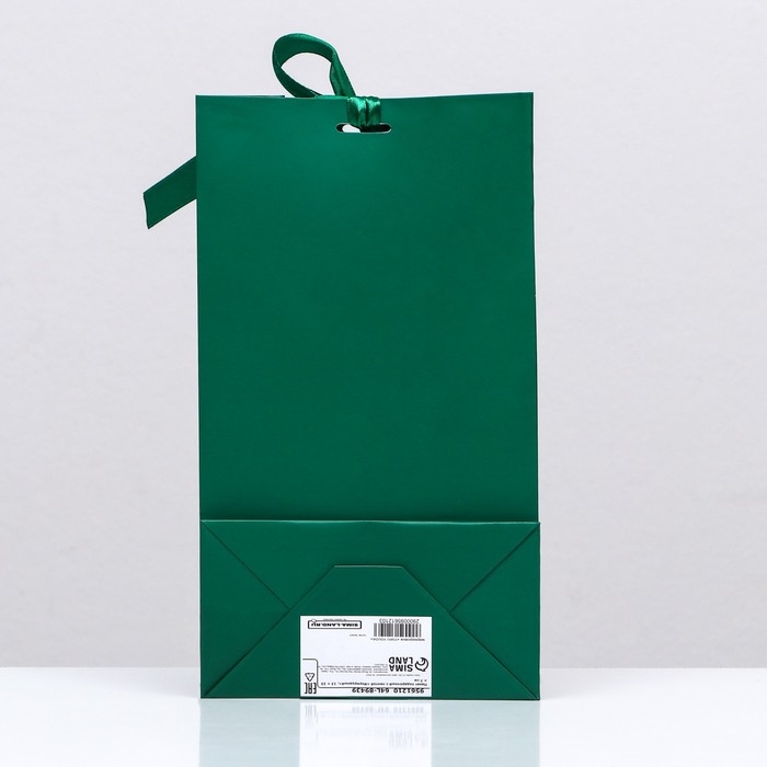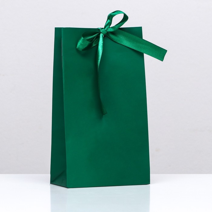 Пакет подарочный с лентой «Зелёный» 13 х 23 х 7 см, 1 шт.
