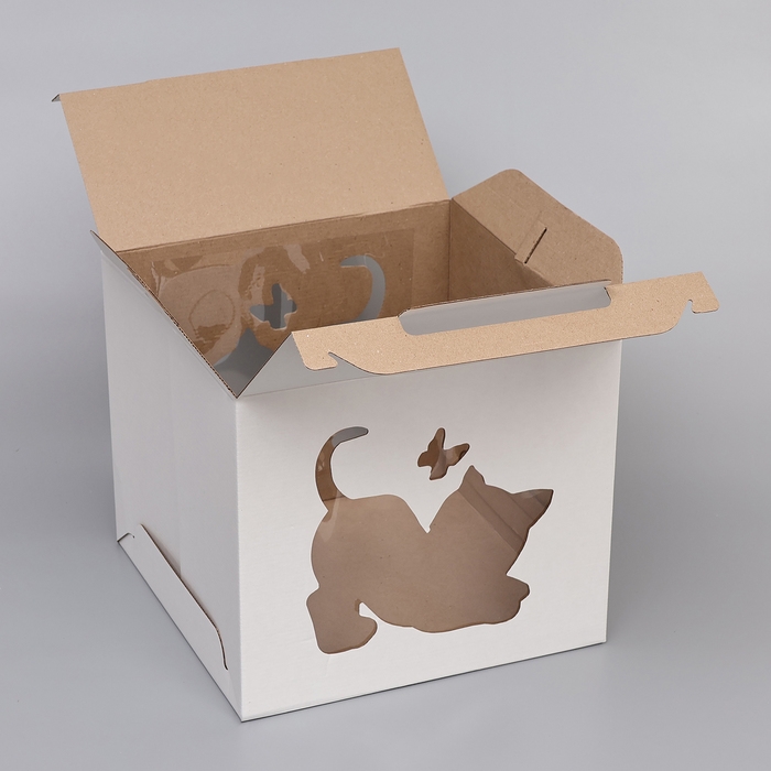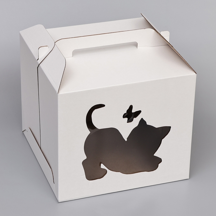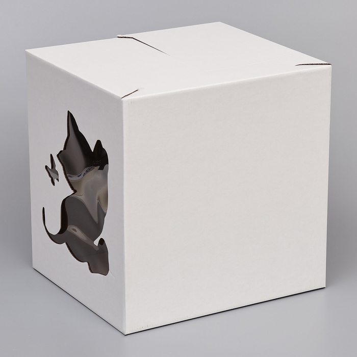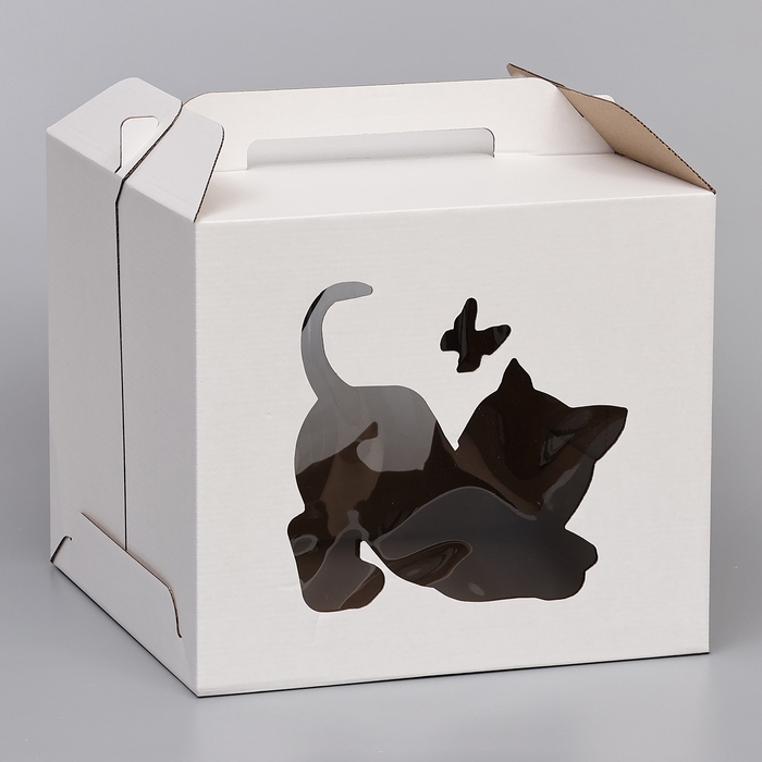 Кондитерская упаковка "Котенок", 2 окна, белая, 35 х 35 х 31 см