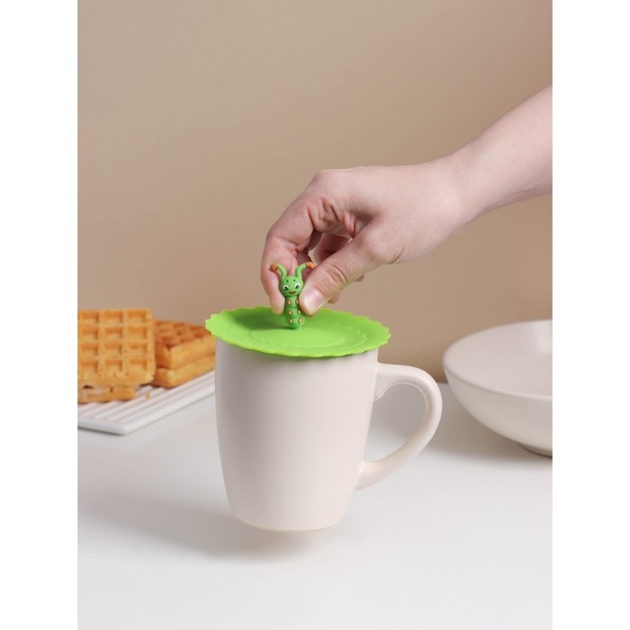 Крышка - непроливайка силиконовая Доляна «Гусеничка», d=10 см, цвет зелёный