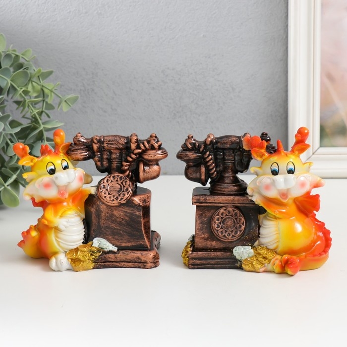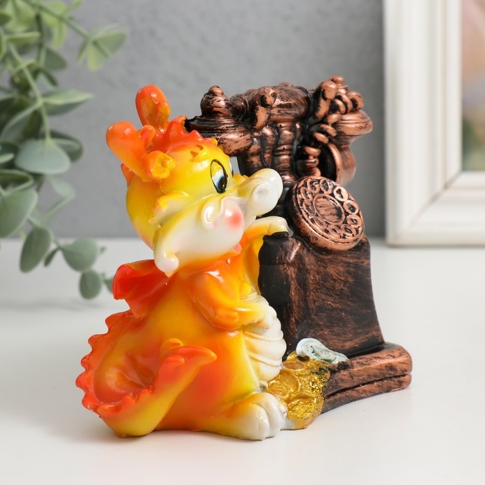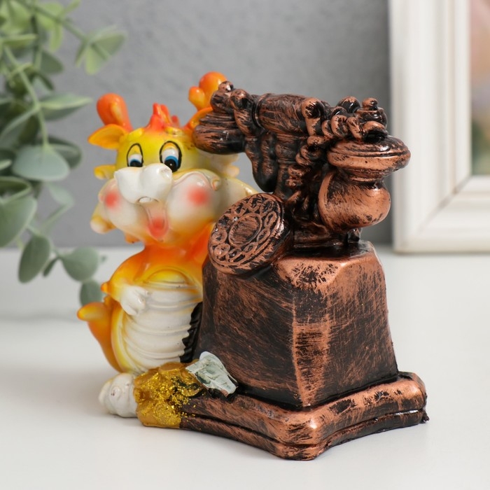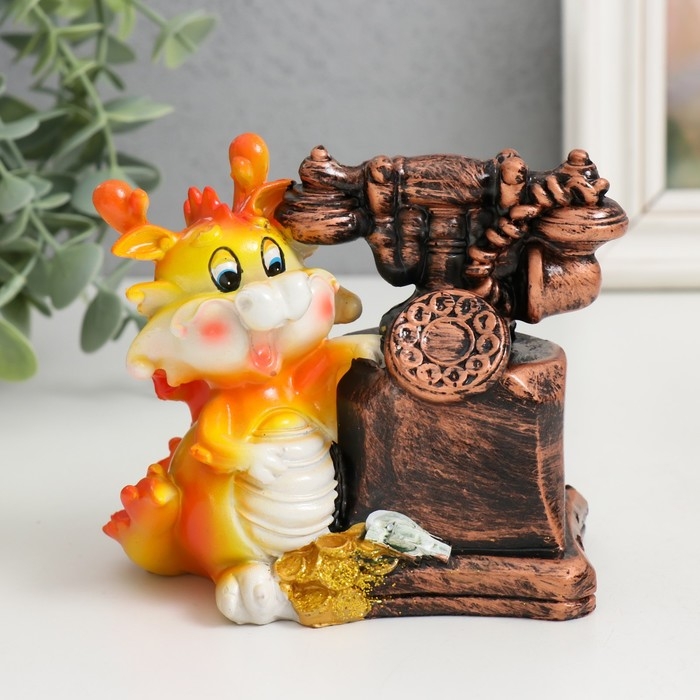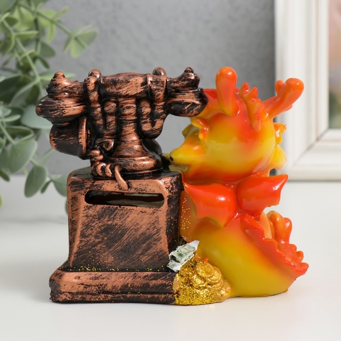 Копилка полистоун "Огненный дракоша с ретротелефоном" МИКС 11х7х10,5 см