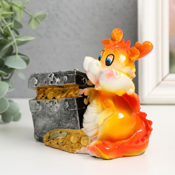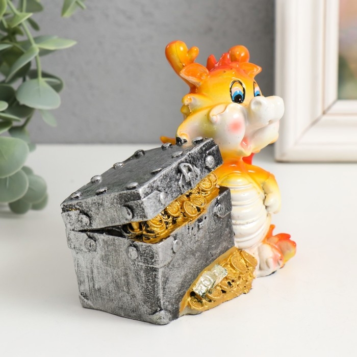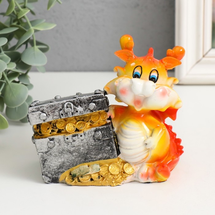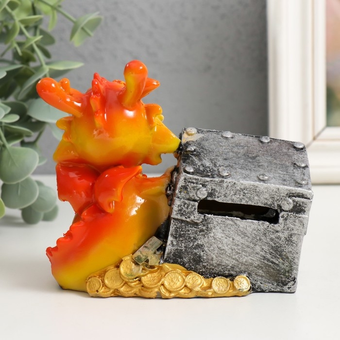 Копилка полистоун "Огненный дракоша с подарком/сундуком" МИКС 10,5х6х10 см