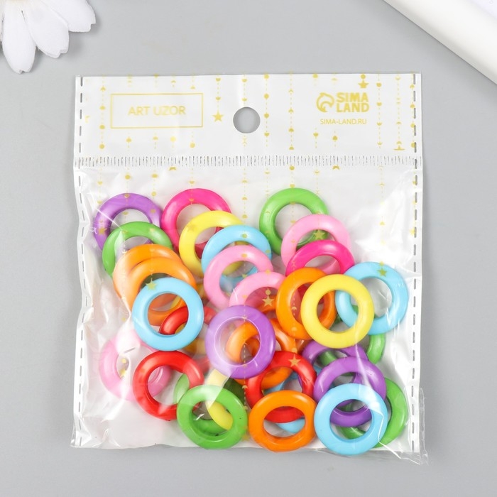 Бусины для творчества пластик "Колечки" цветные набор 25 гр 0,4х2х2 см