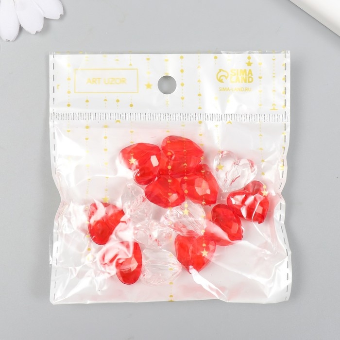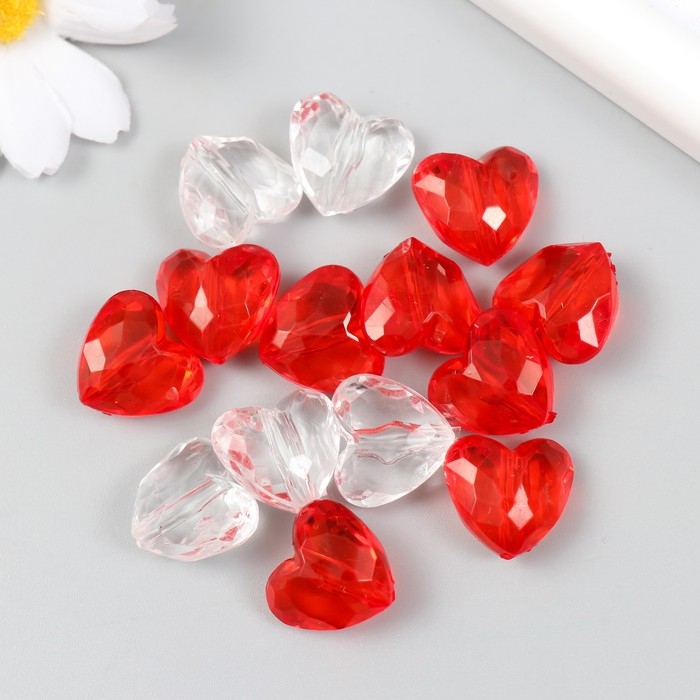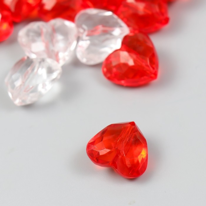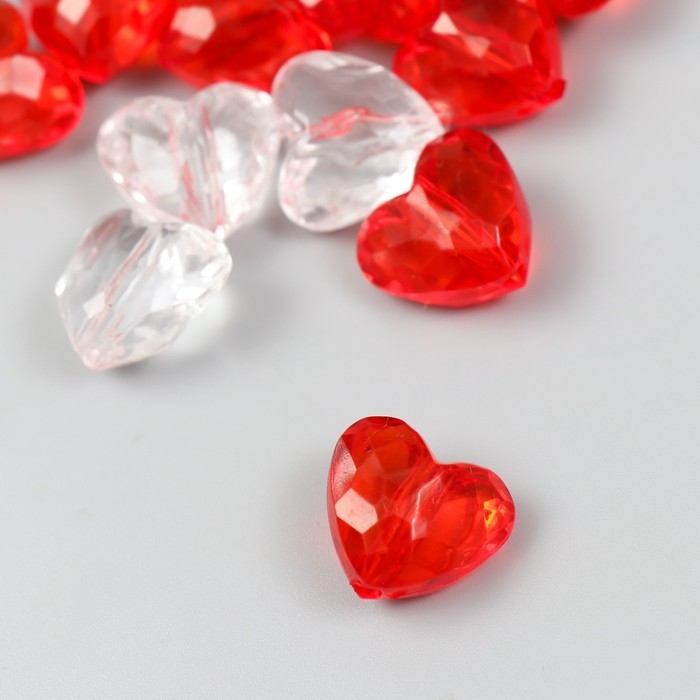 Бусины для творчества пластик "Сердца с гранями" прозрачные набор 20 гр 0,9х1,6х1,8 см