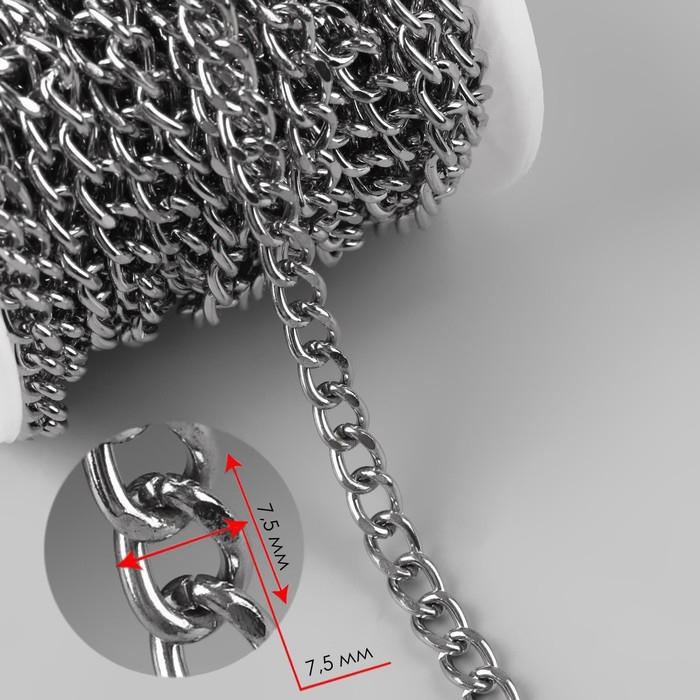 Цепочка для сумки, железная, 7,5 × 7,5 мм, 10 ± 0,5 м, цвет серебряный