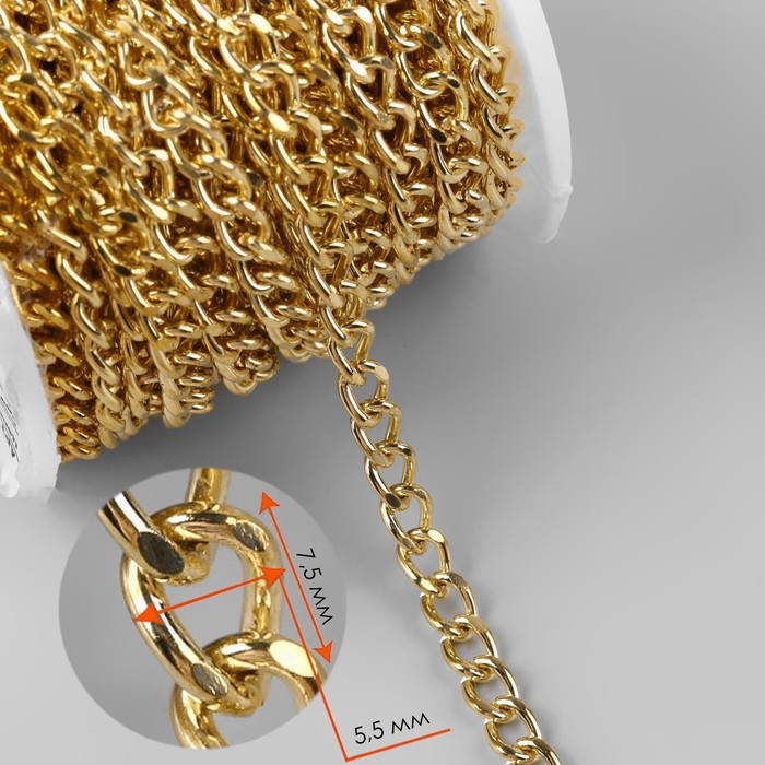 Цепочка для сумки, железная, 5,5 × 7,5 мм, 10 ± 0,5 м, цвет золотой
