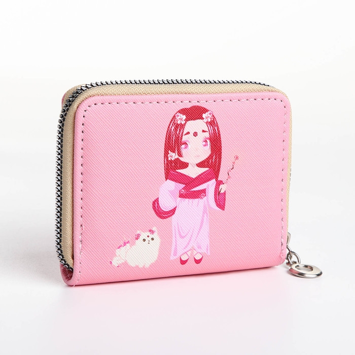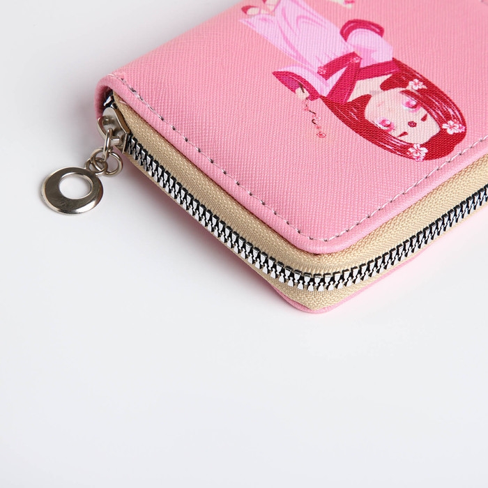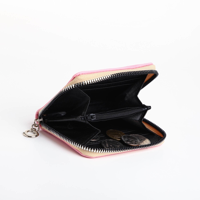 Кошелёк на молнии, отдел для карт, для монет, цвет розовый
