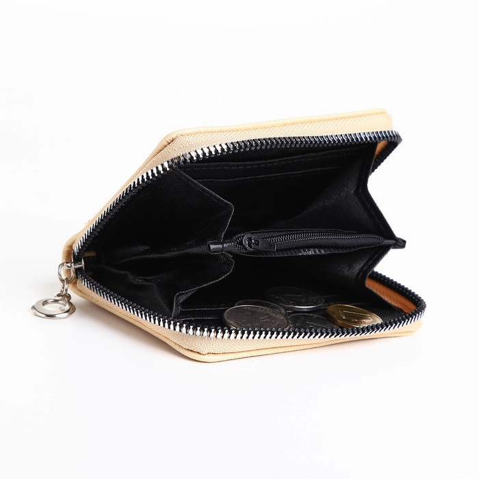 Кошелёк на молнии, отдел для карт, для монет, цвет бежевый
