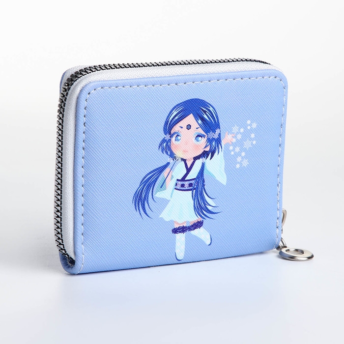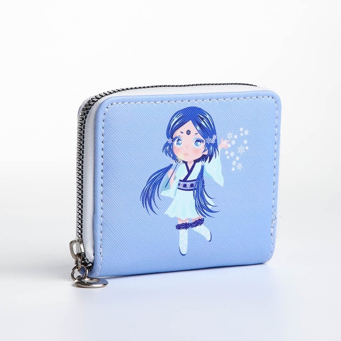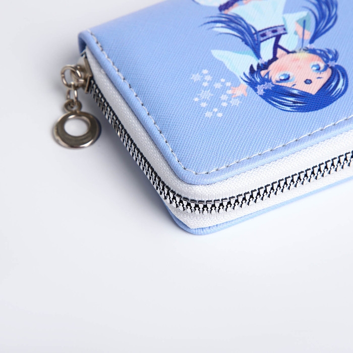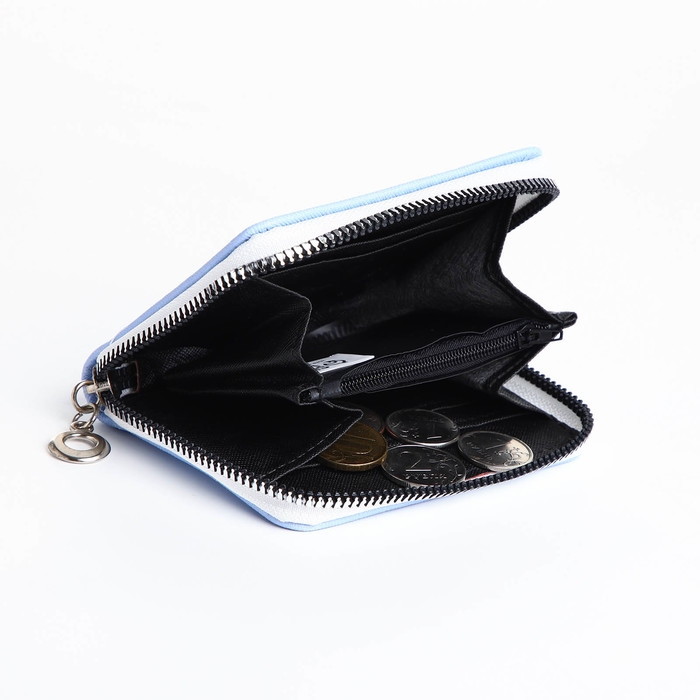 Кошелёк на молнии, отдел для карт, для монет, цвет голубой