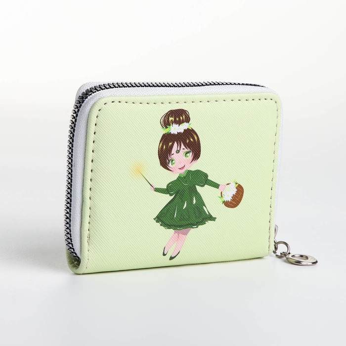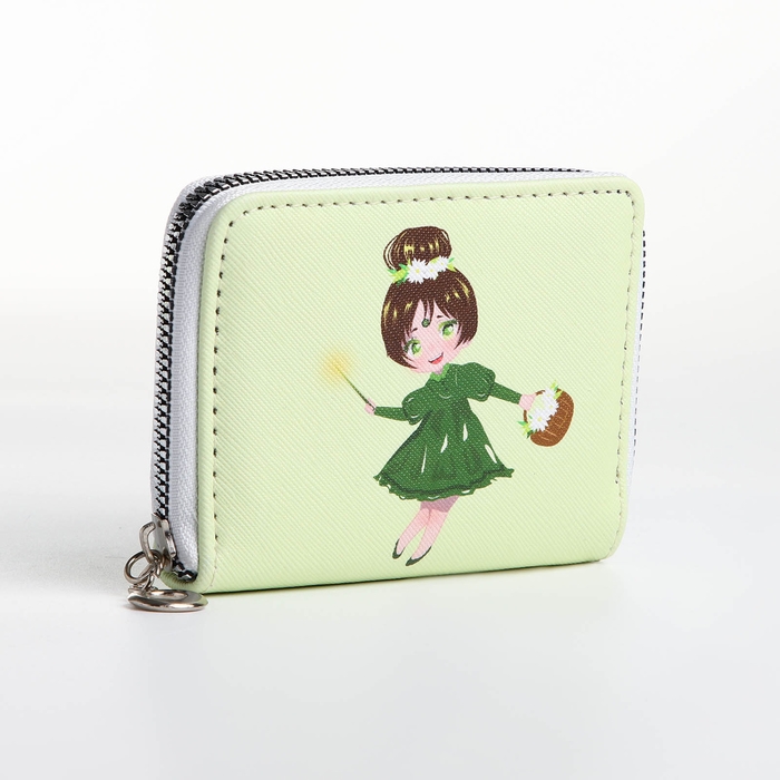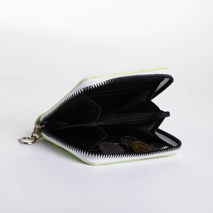 Кошелёк на молнии, отдел для карт, для монет, цвет зелёный