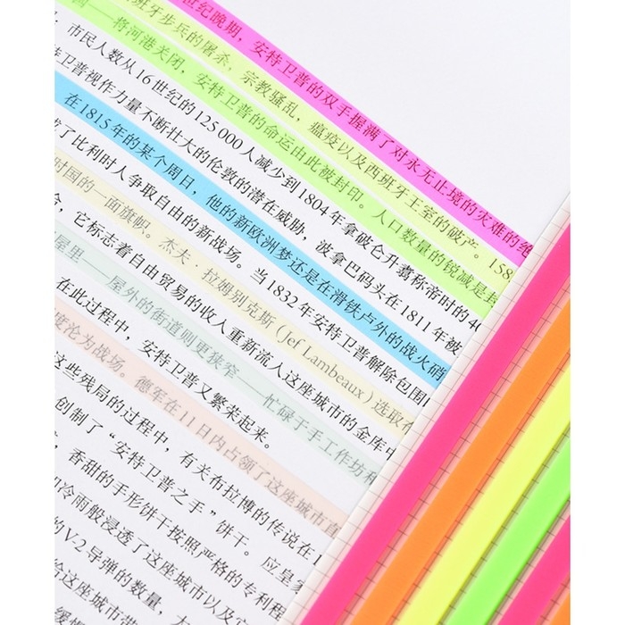 Блок-закладка с липким краем 145 мм х 5 мм, пластик, 4 цвета по 20 листов х 8 листов, флуоресцентный