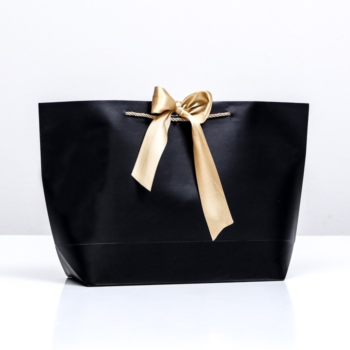 Пакет подарочный с лентой 30 х 27,5 х 12 см "Черный"