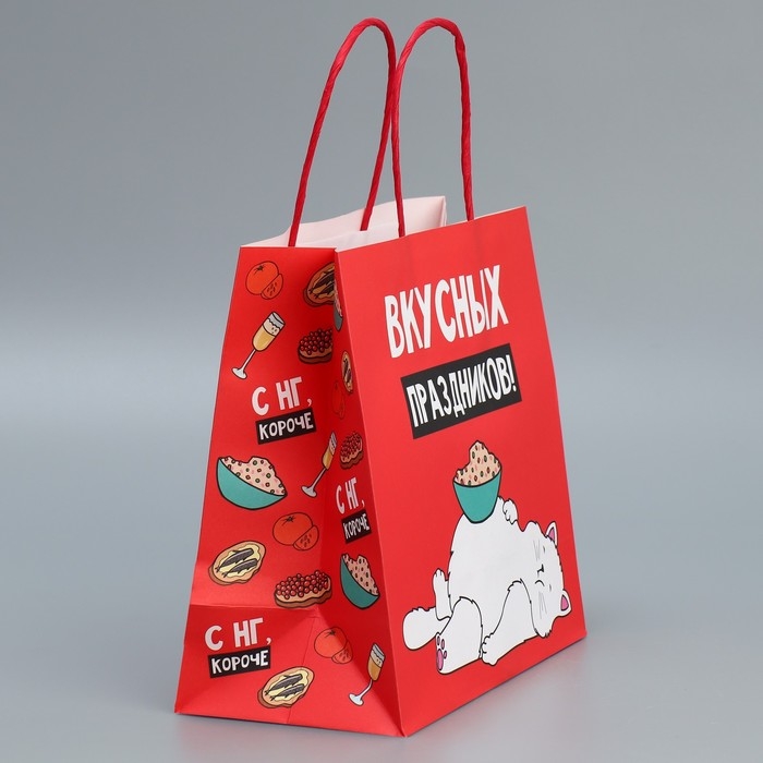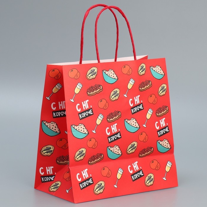 Пакет подарочный новогодний крафтовый «Праздники», 22 х 22 х 11 см, Новый год