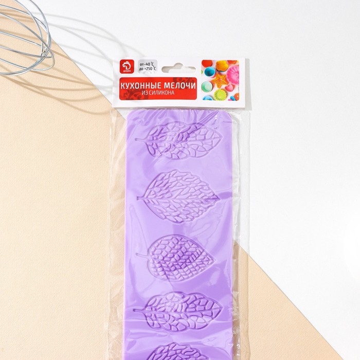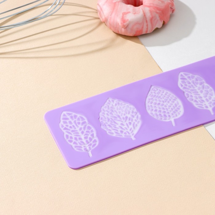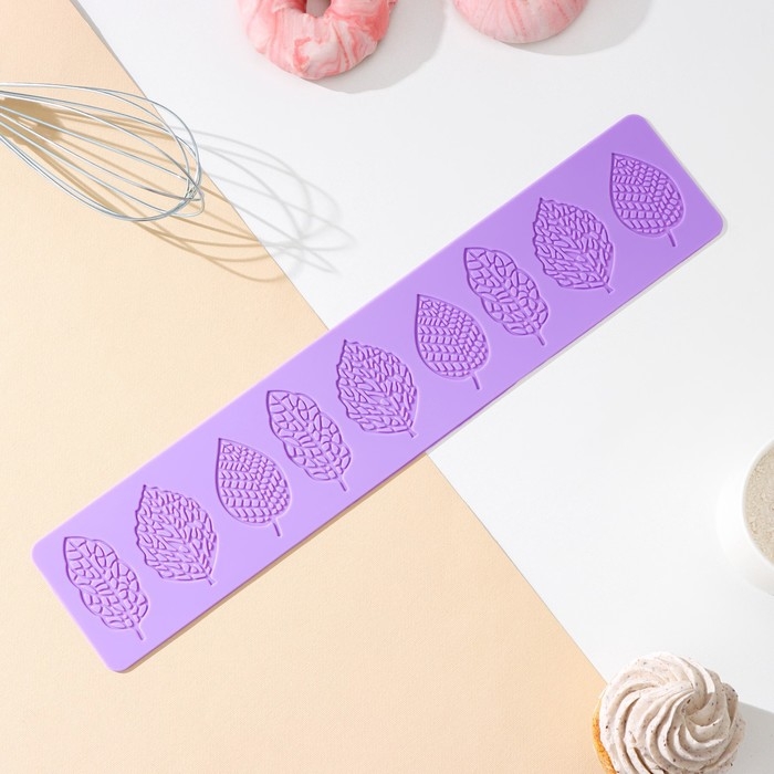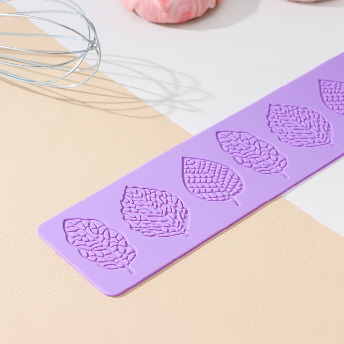 Коврик для айсинга Доляна «Листья ажурные», силикон, 38,5×8×0,1 см, цвет сиреневый