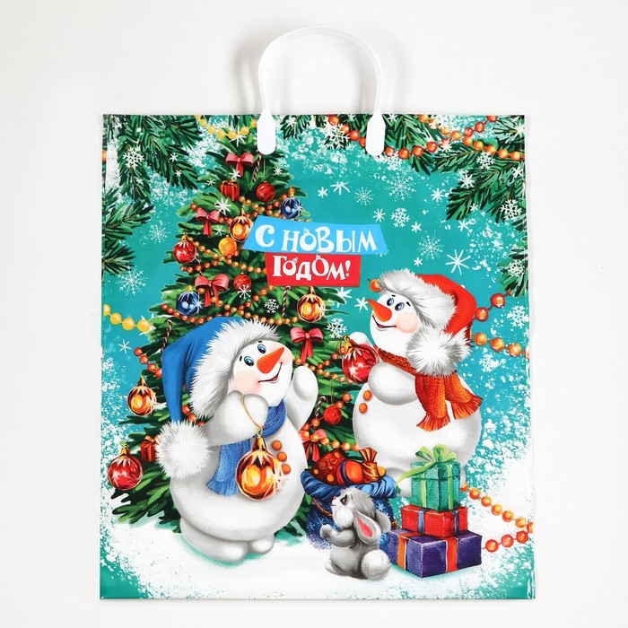 Новый год. Пакет "Дворик", полиэтиленовый с пластиковой ручкой, 40 х 44 см.