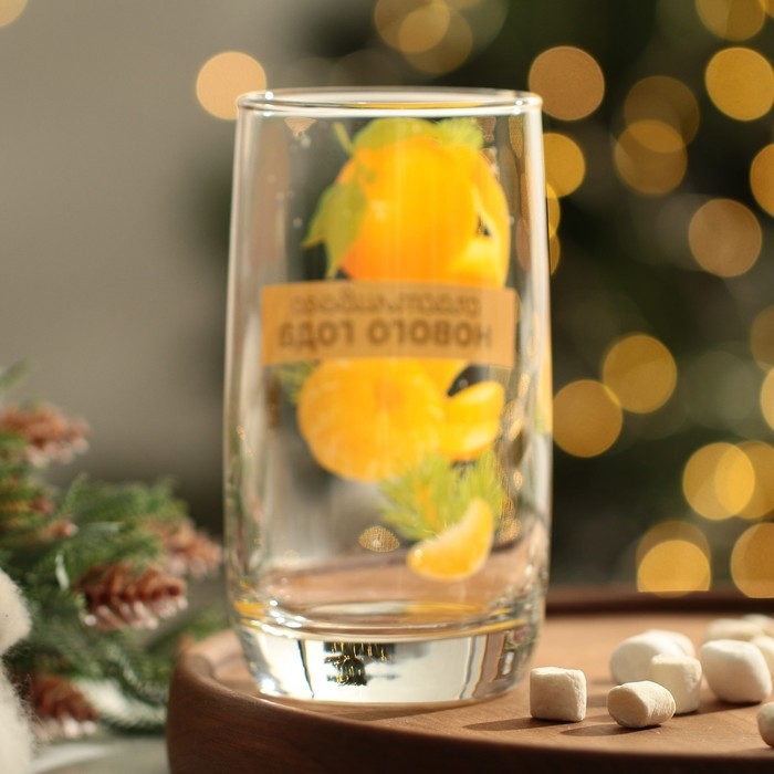 Новый год. Стакан стеклянный «Мандаринки», 330 мл